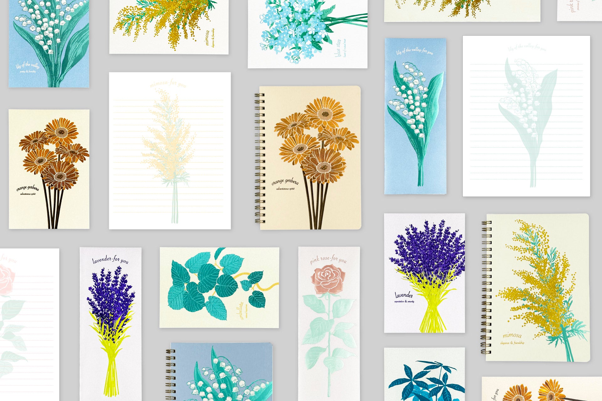 花びらの重なりや葉っぱの1枚1枚を繊細な箔押しのみで表現。 モチーフごとに花言葉がデザインされています。 Hakuoshi Botanicalが幸運を呼び込んでくれるかも。