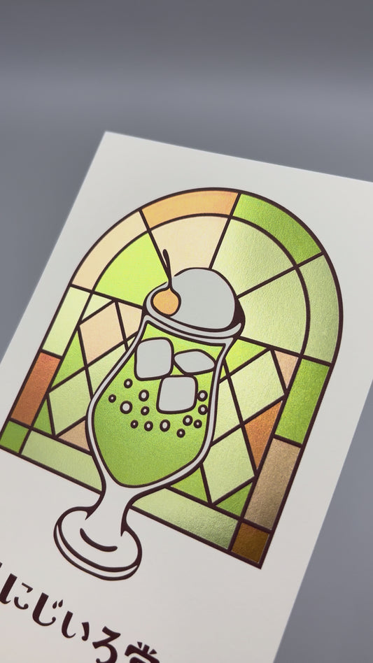 喫茶にじいろ堂 クリームソーダ ポストカード ステンドグラス「キウイ」