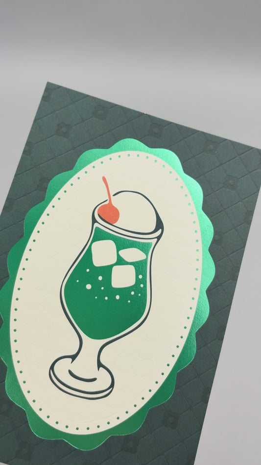 喫茶にじいろ堂 クリームソーダ ポストカード キルティング「メロン」