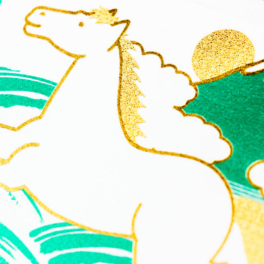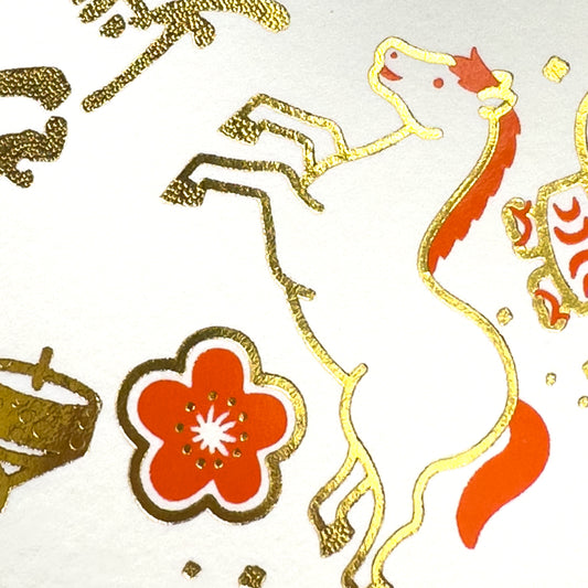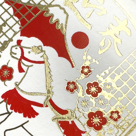 • 箔押し 私製年賀状 「赤富士と神馬」