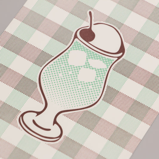 喫茶にじいろ堂 クリームソーダ ポストカード ギンガムチェック「メロン」