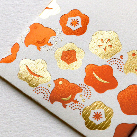 箔ぽち袋 縁起物ならべ 「千鳥・梅」