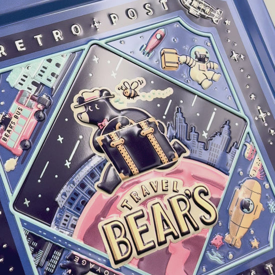 深海、海、陸、宇宙の4つのシーンを舞台に、トランクを手にした熊が旅を続けます。