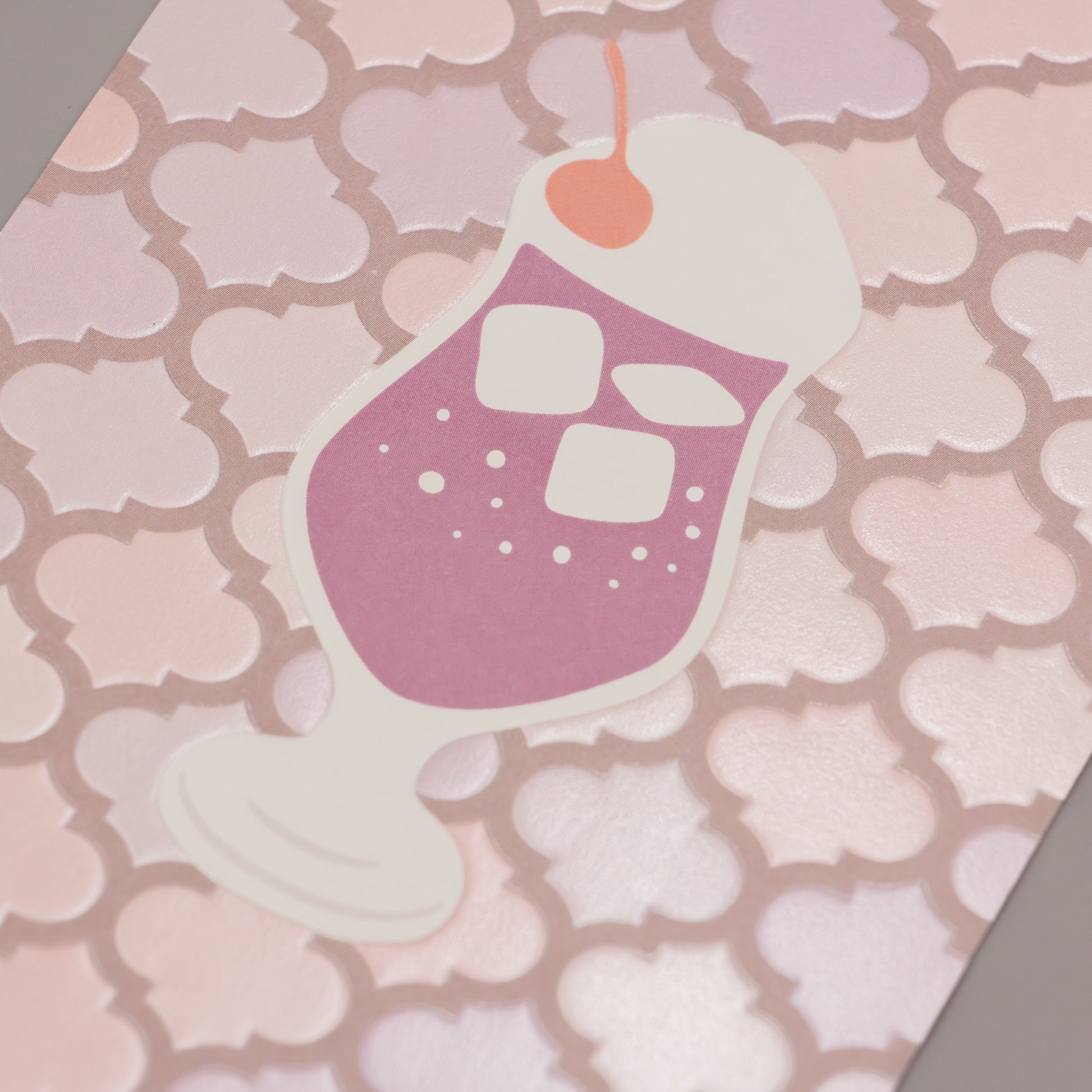 オフセット印刷の上にクリア箔を押し、さらに紙を裏側から押し上げる「浮き出し加工」を施すことで、モロッカンタイルの質感をリアルに再現。レトロでエキゾチックな雰囲気を演出しました。