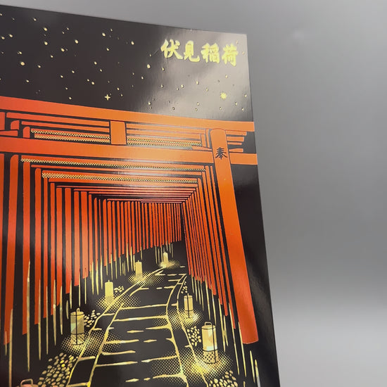 伏見稲荷を象徴する千本鳥居と楼門、2つの景色を繊細な箔で表現しました。