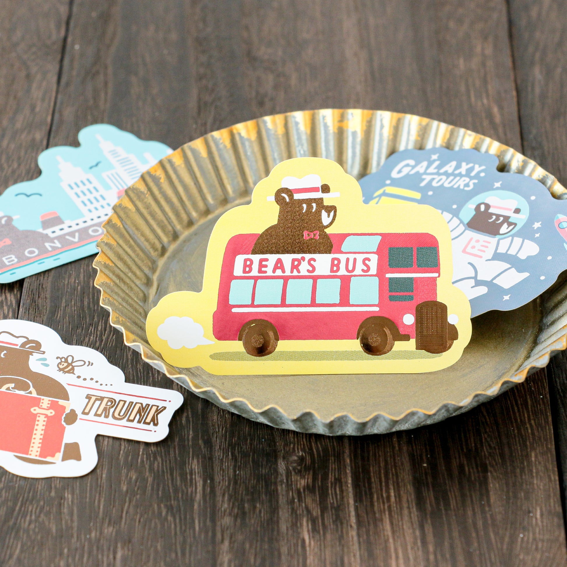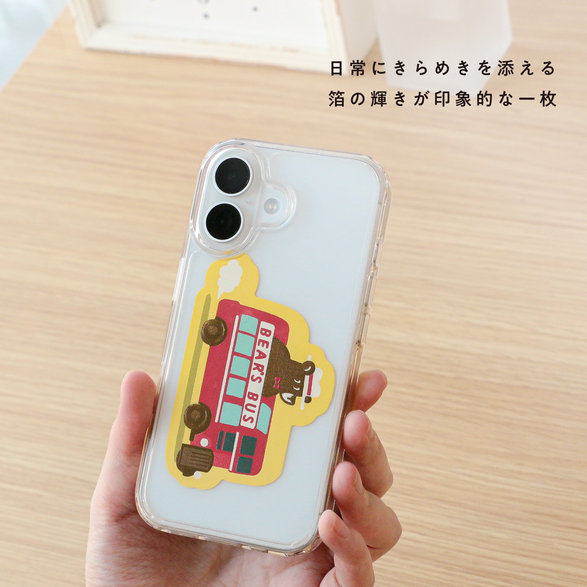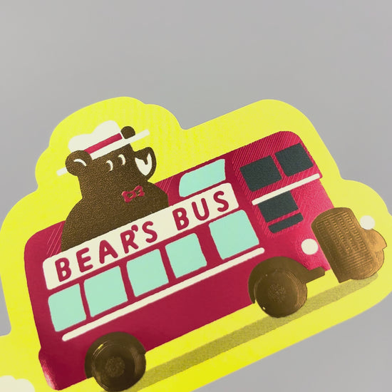 旅を続けるクマのワンシーンをキラキラと輝く箔押しが彩ります。