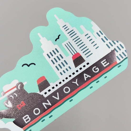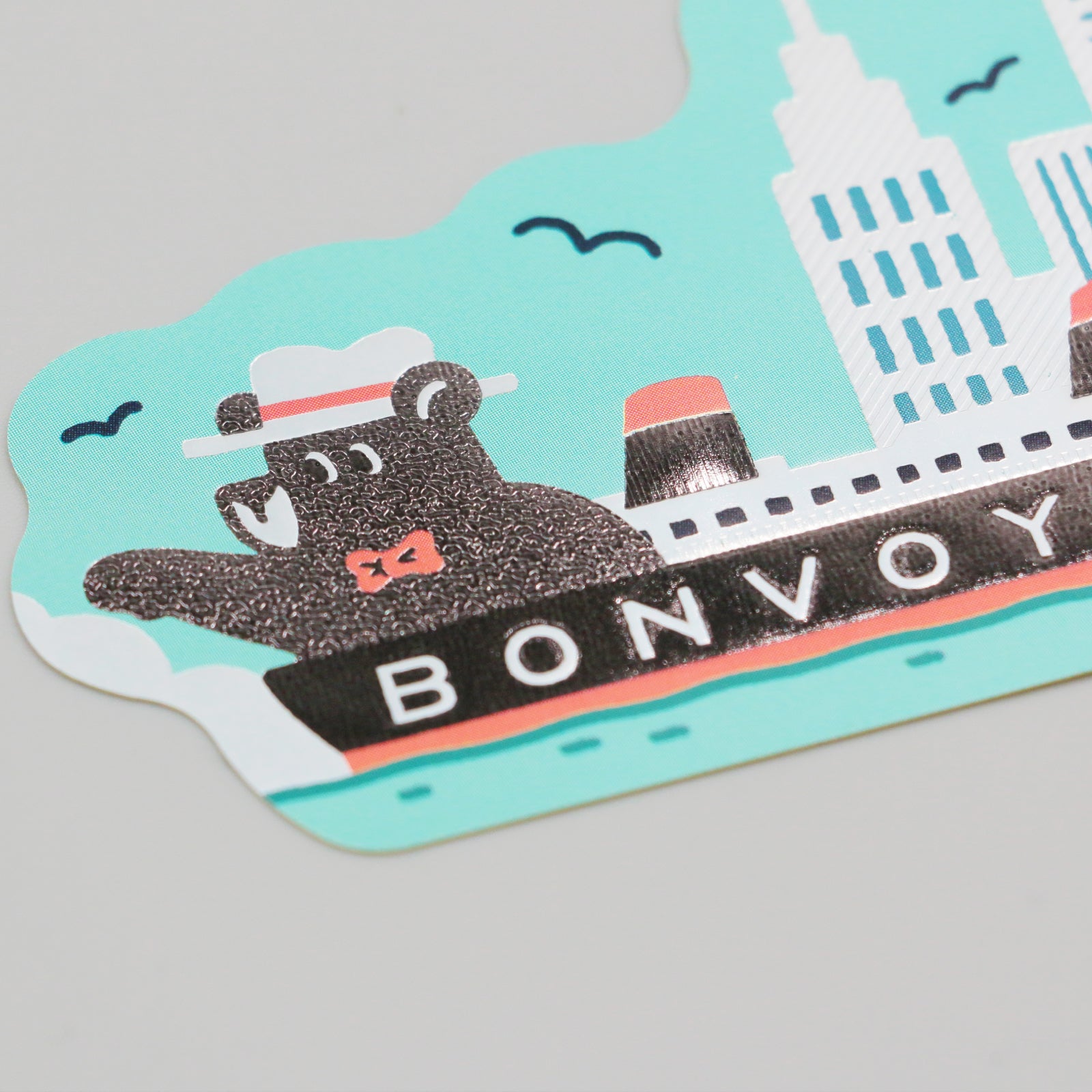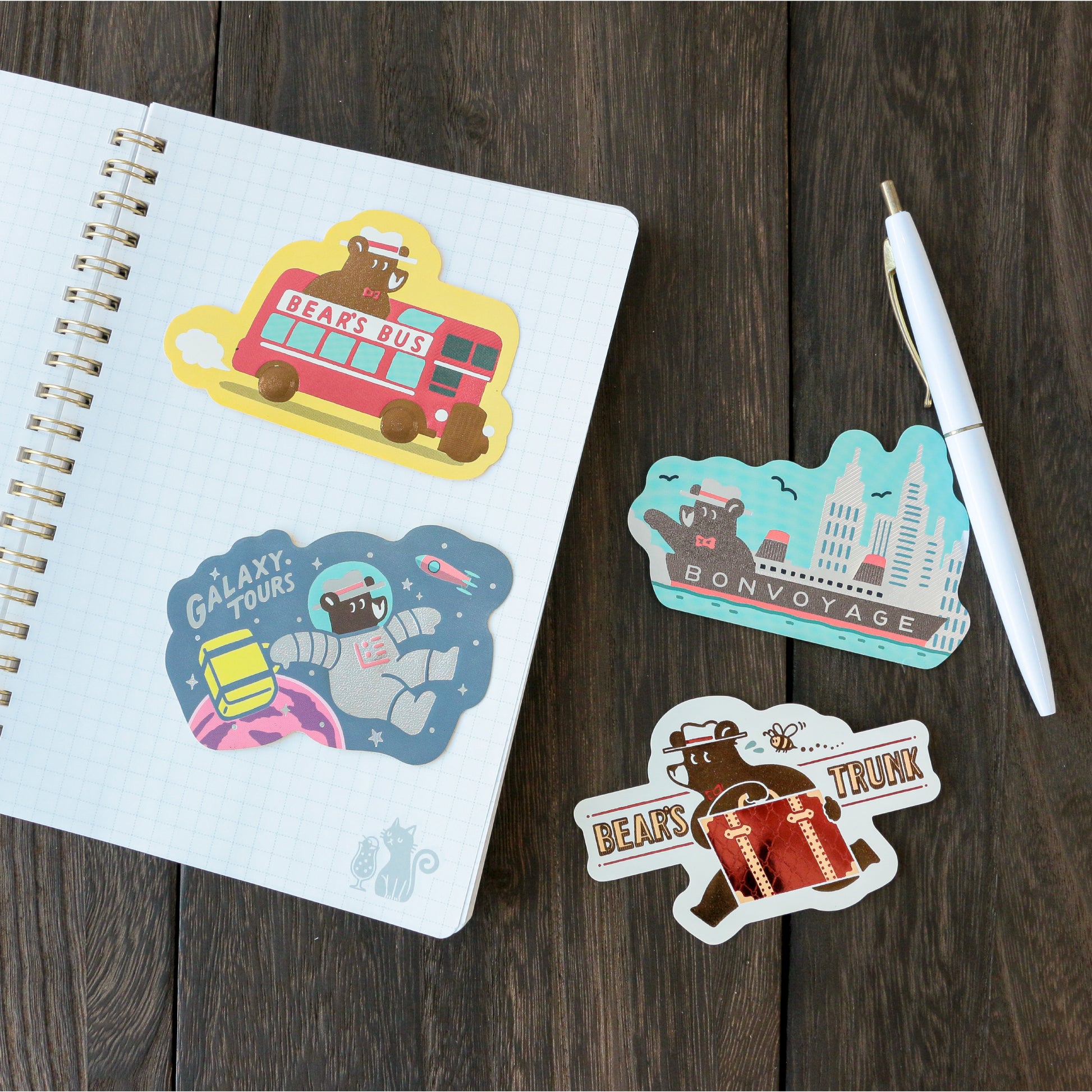 旅を続けるクマのワンシーンをキラキラと輝く箔押しが彩ります。
