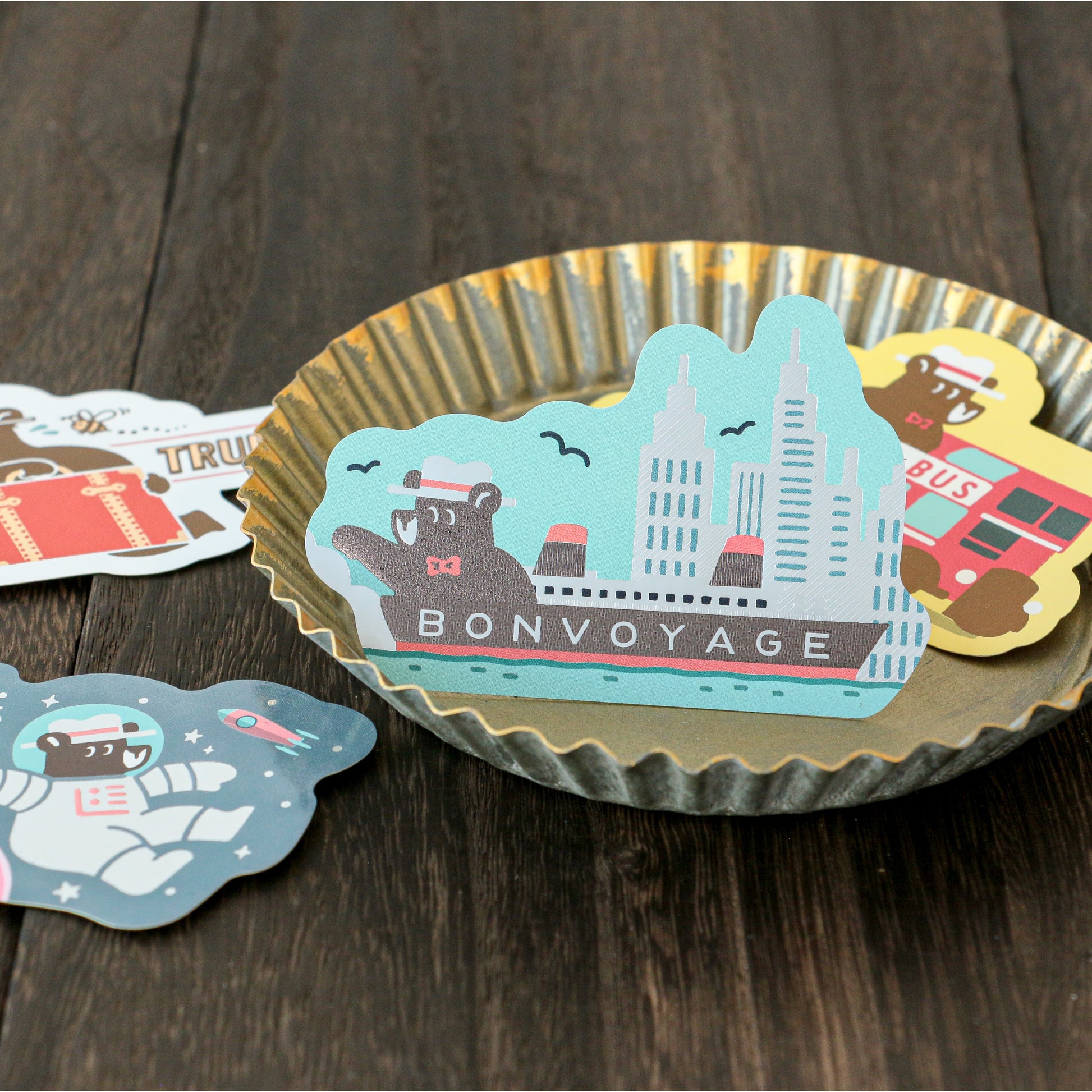 おしゃれなカラーを組み合わせた箔押しと様々な形状のダイカットが魅力のステッカーです。