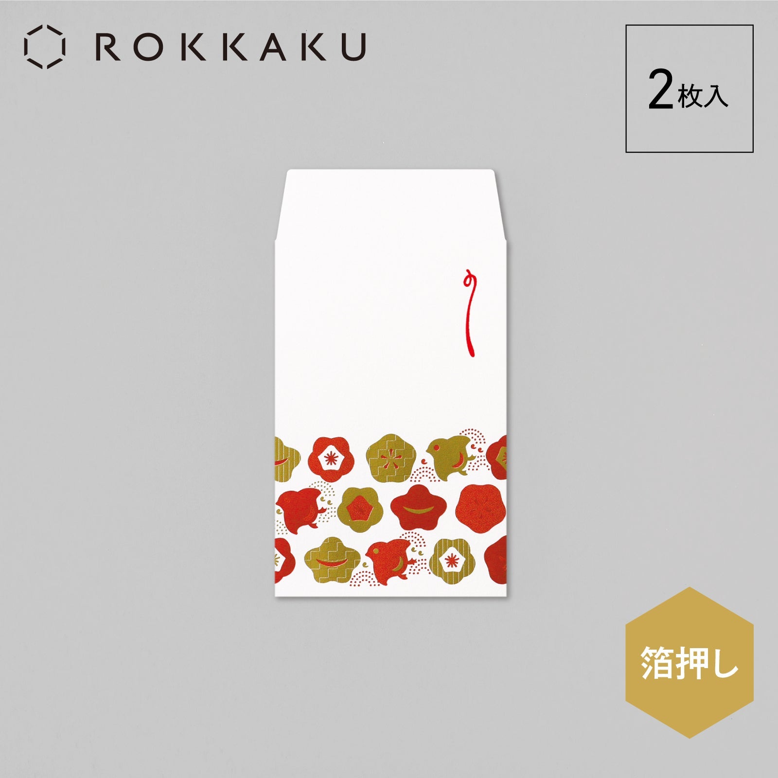 箔ぽち袋 縁起物ならべ 「千鳥・梅」