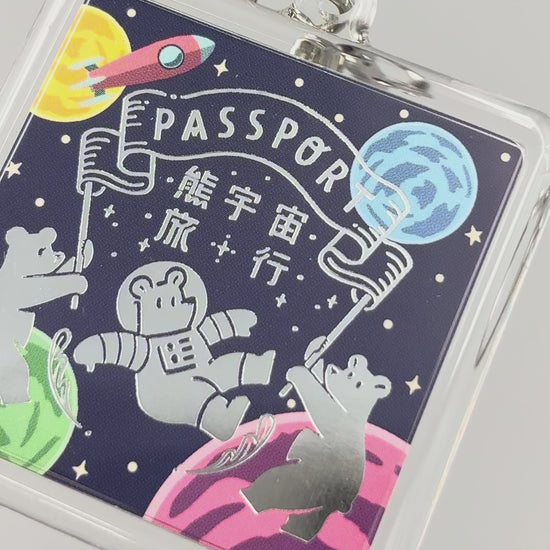 這是一個以旅行證為靈感設計的卡扣式壓克力鑰匙圈。