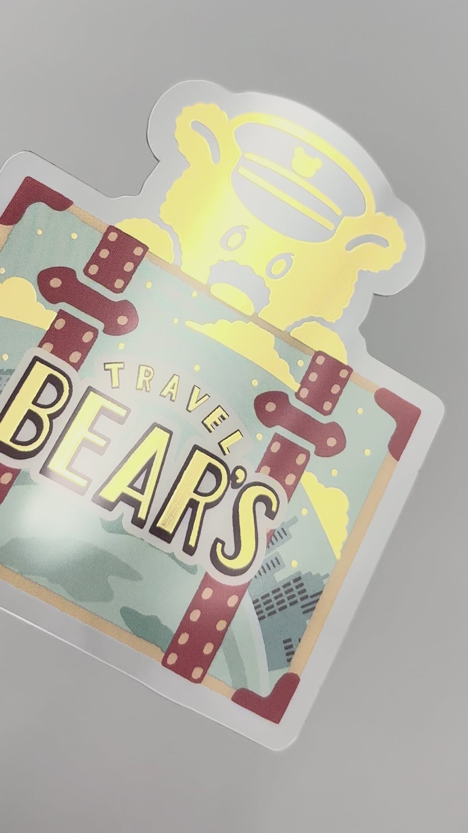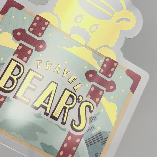 這款模切透明卡片由半透明材質製成,並飾有燙金雲朵、星星和熊圖案。
