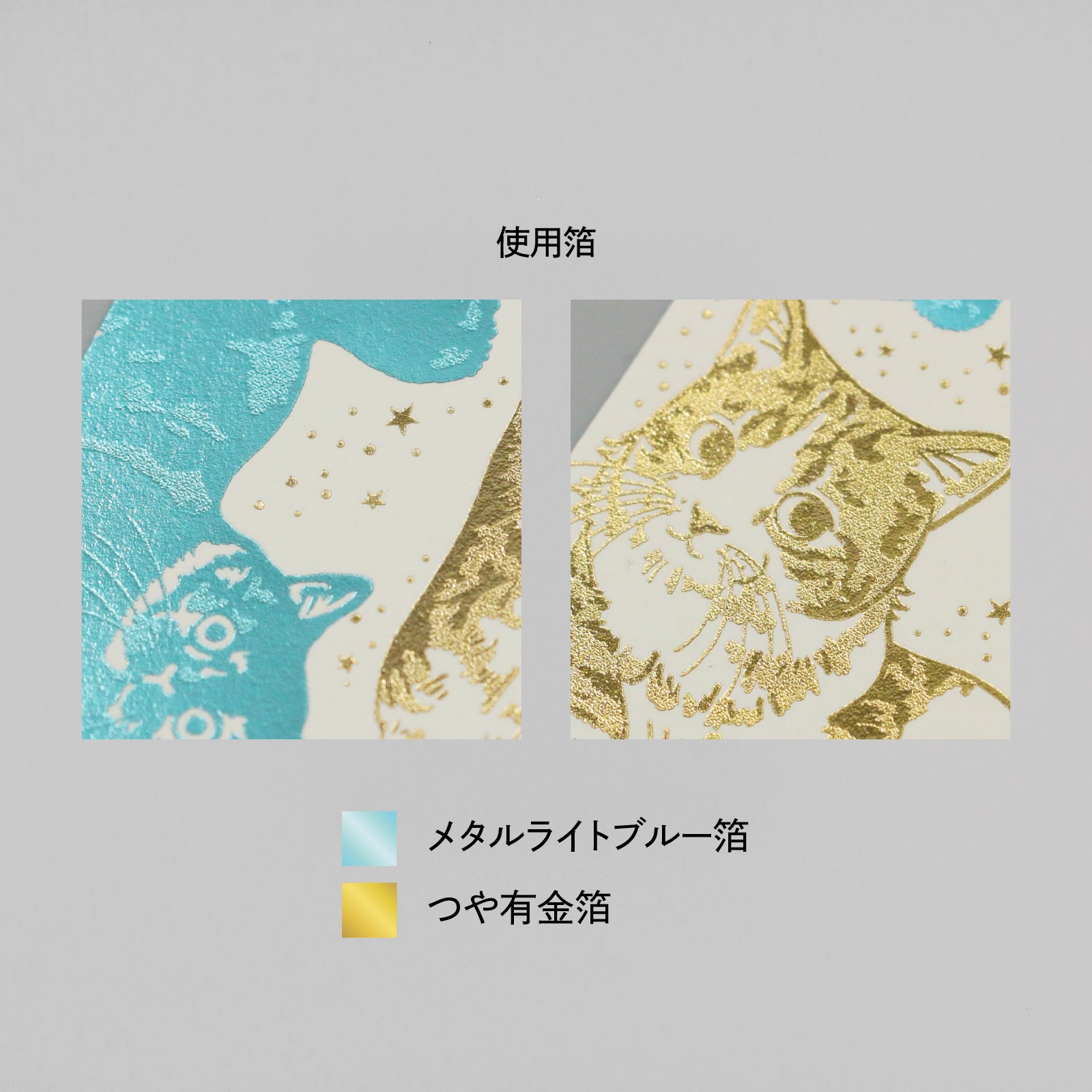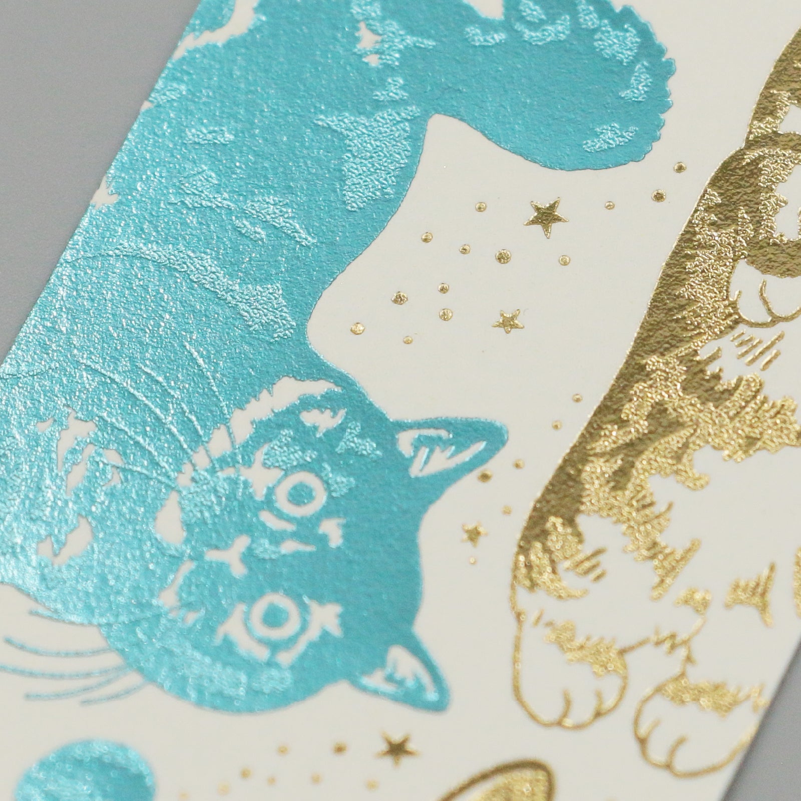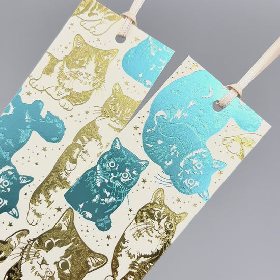 2 枚書籤圖案各異,燙金的插圖散發著美麗的光芒。